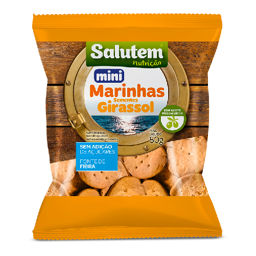 Elaboradas exclusivamente com ingredientes naturais, as Bolachas Marinhas de Girassol Salutem, são bolachas finas e crocantes, inspiradas no pão dos antigos marinheiros, enriquecidas com sementes de Girassol.
